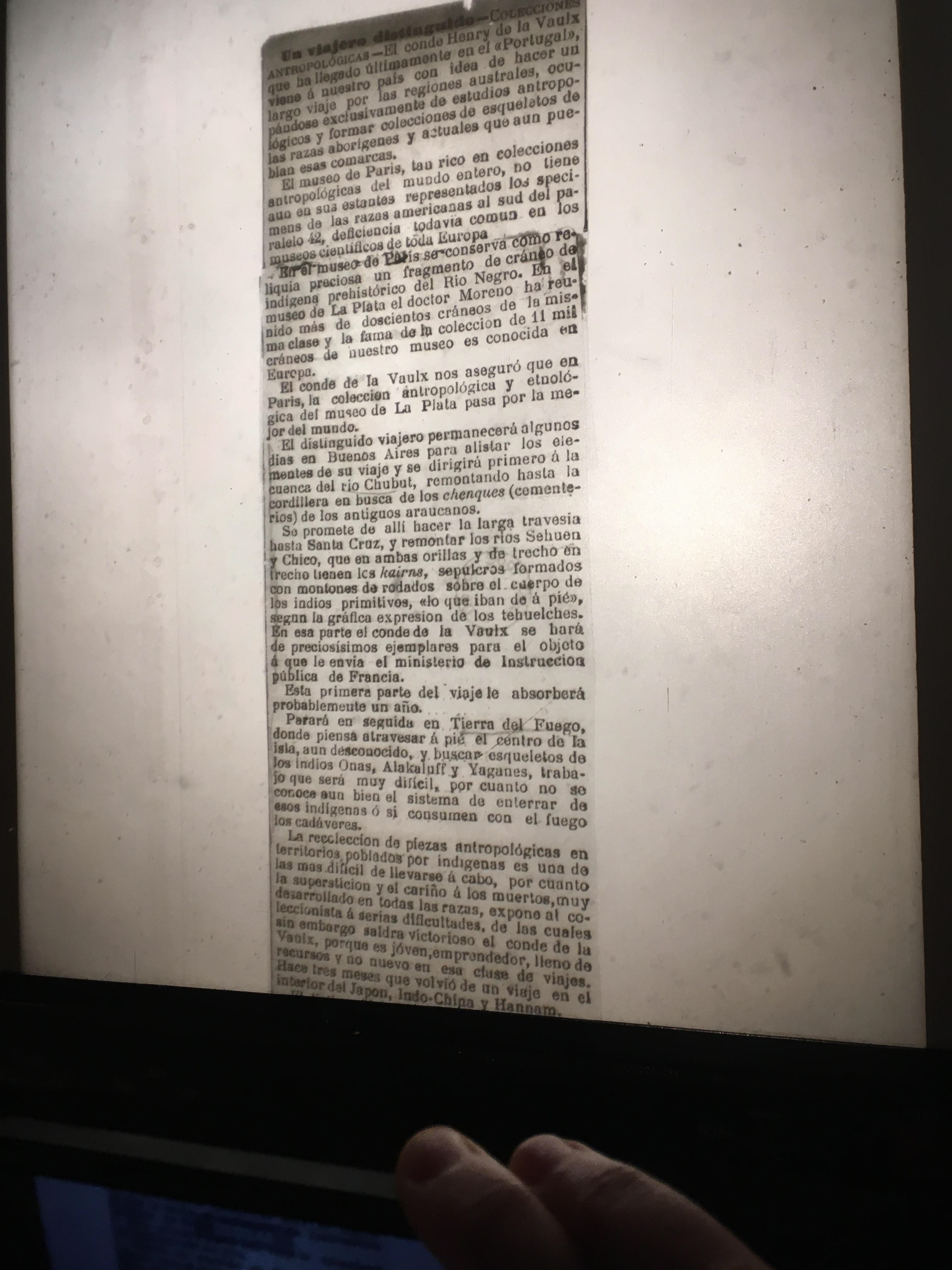 Este pasado mes de septiembre la corte suprema de justicia argentina eliminaba la personalidad jurídica a seis comunidades mapuches de la provincia de Rio Negro. Al mismo tiempo, como en tantos otros territorios, se intenta desalojar de sus tierras milenarias al lof liempichun sakamata, una comunidad que sigue resistiendo ante la infinidad de embates sufridos. Entre éstos se encuentran el robo y la profanación de sus tumbas a manos del conde francés Henry de La Vaulx hace más de un siglo que, tras disfrutar de su hospitalidad, abandona apresuradamente la Patagonia con un botín de noventa y seis cráneos y diez esqueletos completos, además de un impresionante ajuar compuesto por centenares de valiosos objetos. La mayoría fueron a parar a los sótanos del Musée de l'Homme de París, mientras que otros terminaron en manos de coleccionistas privados. Hoy, mientras aquellos huesos siguen en los museos europeos, y sus descendientes intentan recuperarlos para que vuelvan a descansar donde deben, las grandes compañías petroleras y los estados intentan repartirse sus tierras.